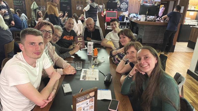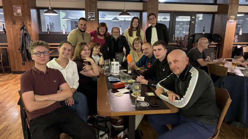 Druhá listopadová hra nás zastihla bez Míry ale po čase s Daliborem a Ivou. Míra, coby velký přítel Želvušek, usilovně držel palce a spolu s maskotem, který s ním odletěl až do dalekého Chile tak zcela jistě pomohl k úspěchu, které jsme v tomto kole vybojovali. Vše začalo v pomalejším rozjezdu na téma Detektivky a Úsudky. Úplně nechápu, jak může team, který úsudky má za plný počet lehce pokazit detektivky, ale konečných 8 bodů vedlo hned z kraje k medailové pozici. Druhé kolo ukázalo kvality naší dámské části teamu. Parfémy jim prostě jdou. A do toho trocha hokejistického sportu, čímž jsme s devíti body jednoznačně zabodovali a dokonce v tomto kole utekli i Hadrům. Hudební kolo je vždy taková sázka do loterie. Po minulých pohádkových písních jsme čekali něco ostřejšího. Ale výsledkem byly pomocí AI modifikované známé písně. V tom aby se prase vyznalo, ale i tak velmi slušných 3,5 bodů. Druhá půlka byly Etnika, kde jsme dokonce i věděli, že Valaši vlastně nejsou Valaši, ale Romové. Díky panáku jsme tak vybojovali 8,5 bodů v kole a nabrali vítr do plachet. Vést před žolíkem o 4 body bylo dost i na Hadry. Takže byť to nedělají, vsadili si. A Želvušky? Nějaké tlaky tam samozřejmě byly, ale naštěstí zvítězilo s drobným podfukem demokratické hlasování a žolíčka jsme nedali. Jak jinak si totiž vysvětlit, že z osmi hráčů se na hlasovacím lístku objeví najednou 15 hlasů? Ale což, důležitý je výsledek. A ten Želvušky zvládly excelentně. V tématu Fyziky a tepelné vodivosti s elektrickou vodivostí sice rezervy jsou, ale ve spojení s Bylinami, kde excelovala Markétka s Lenkou, se podařilo Želvuškám získat 8 bodů a byly v kole nejlepší team. Hadry s Popíkama si vsadili však na 9 bodů a tím se ještě více rozevřely nůžky ztráty. Ovšem Hattrik se trefil a začal stíhací závod, kde jsme o 3,5 bodu nastupovali do posledního kola. Toto nám obecně nejde a opět se potvrdilo, že ustát svoji pozici před závěrečným spurtem ubere mnoho sil. Historické bitvy a Hlášky z filmů přinesly jen 58,3% úspěšnost. Každopádně těch ušmudlaných 7 bodů nakonec stačilo. Témata byla těžká i pro ostatní, byť klobouk dolů, protože Hadry měly 10 bodů - asi koukají víc na filmy o historii. Želvušky si tak po čase krásných umístění z minulých kol odnáší, a to i díky fanouškům v Chile, po čase zlatou medaili! Krásná práce a výtečný vstup do druhé ligové poloviny.