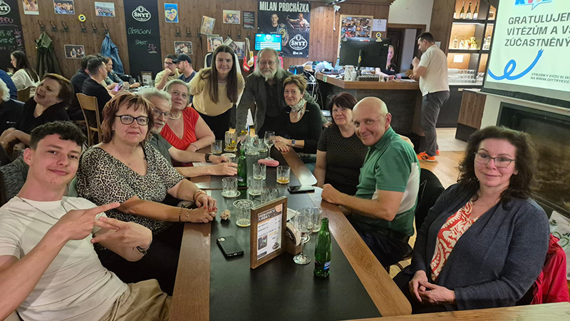 Po suchém návratu Lenky a Luboše z vlhké Madeiry jsme byli opět v základní sestavě a nažhaveni do dalšího ligového kola. Už na začátku moderátor sliboval průběžné nové informace stran Kvizu. To, že budou až tak velké, jsme netušili. Každopádně první téma z říše zvířat ukázalo biologické neznalosti Želvušek a ani druhé téma Slova jen se samohláskami už nenapravilo ztrátu tří bodů v kole a krásné poslední místo hned ze startu. Nevěšíme ale hlavu, známe své limity a víme, že náš tipovací Guru Dalibor v nouzi přidá nějaký ten tipovací bodík. Plni optimismu vstupujeme do druhého kola s tématy francouzských filmů a kosmetiky. A ejhle, ono je to ještě horší než biologie. Takže krásných 6 bodů ale světe div se, další tipovačka je naše - neskutečná šňůra. Naštěstí kolo nesedlo i ostatním, takže propad hlubší propad se nekonal. Zde je potřeba se zastavit s komentářem nápověd. Toto byla jedna ze změn, kterou nám Michal vysvětlil. Již není možno zjistit předem, kdy jaká nápověda bude. Zda je to dobrá či špatná změna se uvidí do budoucna. Je možné, že stejně jak inovátorství u tipovaček i tento nový formát vydrží sotva dvě hrací kola. Třetí kolo tradičně díky Evě, tématu duetů a tématu ocel přineslo krásných 8,5 bodu. V tu chvíli se Želvušky posunuly na medailovou bronzovou pozici s rozdílem jednoho bodu na Hatrik a tří bodů na čtvrté Popíky. A bylo zase o co hrát. Nastal čas Žolíčka. Paní doktorky už začaly psát na lísteček hlasování. Každopádně hned první téma současných českých spisovatelů přineslo mnoho otazníků do odpovědí a nespravilo ani téma Počítačové hry. Takže se hromadně team shodl, že nebude riskovat bodový propad. Popíci neměli co ztratit a tvrdě šli do sázky sedm. Oni prostě mají patrně nějaký šestý žolíkový smysl a speciálně na Želvušky. Protože my byli se sedmi body v kole nejlepším teamem a Popíci vsadili právě na 7. Nicméně i přes tři body navíc nás nedostihli a my se posunuli po tomto kole na první místo o půl bodu před Hadry. Páté kolo nás však pořád trápí a pozorný čtenář již asi tuší. Témata Pálkové sporty s Přežblepty sice přineslo 8 bodů, ale hlavně druhá část otázek prostě Hadrům seděla. Takže díky dvou bodům navíc nás nakonec zase předstihli před cílovou páskou. Složitost celého kola odpovídá i počtu bodů, kde jsme se jen lehce celkově přehoupli přes 40 bodů. Plni herních zážitků jsme pomalu začali splétat plány do dalších her. Než ale přišel Michal a oznámil, že středeční kvízy ve Šnytu budou končit. Což je nemilé. Protože team vč. fanklubu se hodně za ten čas vypracoval z pozice nováčka do pozice finalisty, se kterým je třeba počítat. Ale hlavně se vždy dobře pobavíme a někdy i naučíme. Každopádně Želvušky nehází flintu do žita a zcela jistě najdou náhradní termín, kdy budou moci své znalosti porovnat s dalšími teamy.
