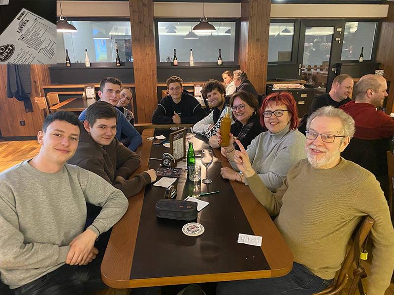 S Bětkou, Jaruškou, Petrem a oslavenkyná Markétkou v zádech, ale v oslabení o "omluvenkáře". To byl další středeční kvíz. Neúčast Evy, coby dohledového orgánu nad dodržováním stanov Želvušek se bohužel ukázala jako klíčová a projevila se na minimálně 5ti bodové ztrátě díky škrtání a nestáním si za svým názorem. Paradoxně nejhorší bylo žolíkové kolo, kde nás dostalo téma, kde jsme si věřili - Cimrmani. Nicméně i když žolíkové body nebyly, nakonec Želvušky v tomto kole byly se 6ti body nejúspěšnějším teamem. Takže Cimrman nešel nikomu:-) Velký dík pak na závěr patří Pavlovi, který nastudoval téma historie letectví a krásně tak dostal team na 4té místo. I když se může zdát "bramborová medaile" jako neúspěch, opak je pravdou. První 4 teamy se totiž vešli do rozdílu 3 bodů.